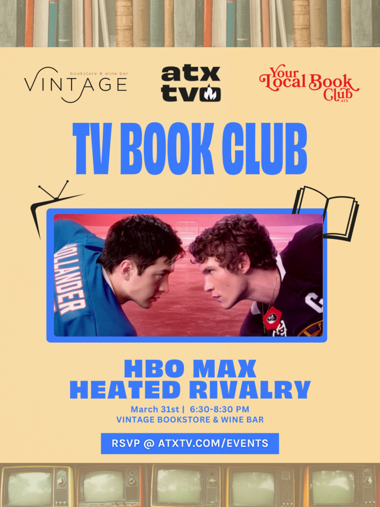 Join ATX TV, Your Local Book Club ATX, and Vintage Bookstore & Wine Bar for TV Book Club on March 31!